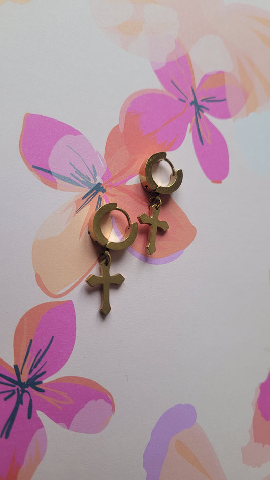 boucles croix doré