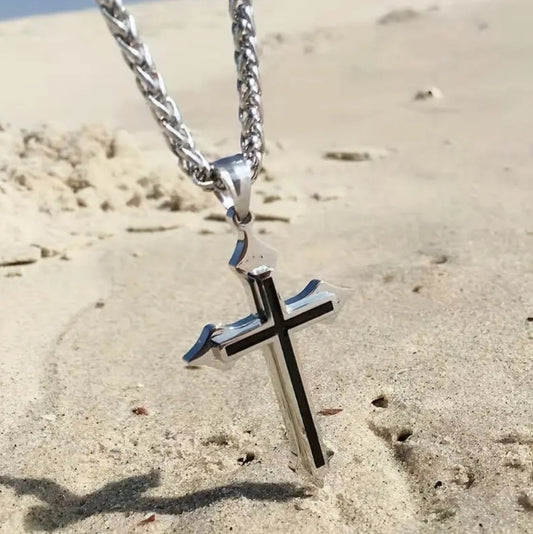 Collier Croix acier titane