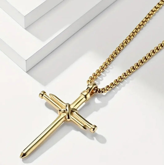 Collier croix clous doré