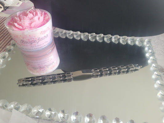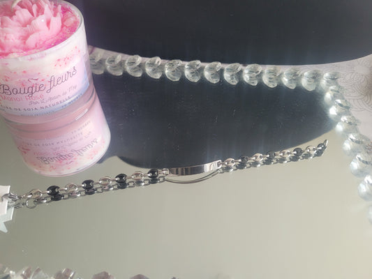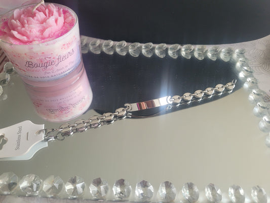 Gourmette grain de café argenté en acier inoxydable