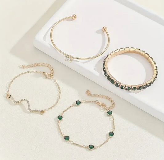 Ensemble Aria 4 bracelets vert/doré