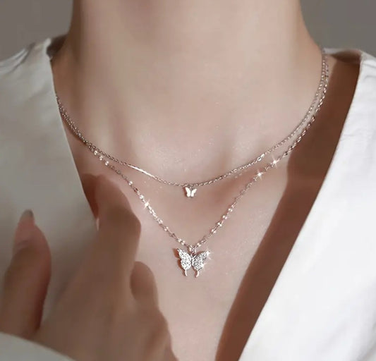 Collier Inaya double papillons argenté