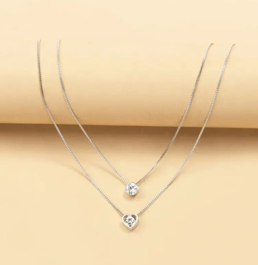 Collier Nina double strass et coeur argenté