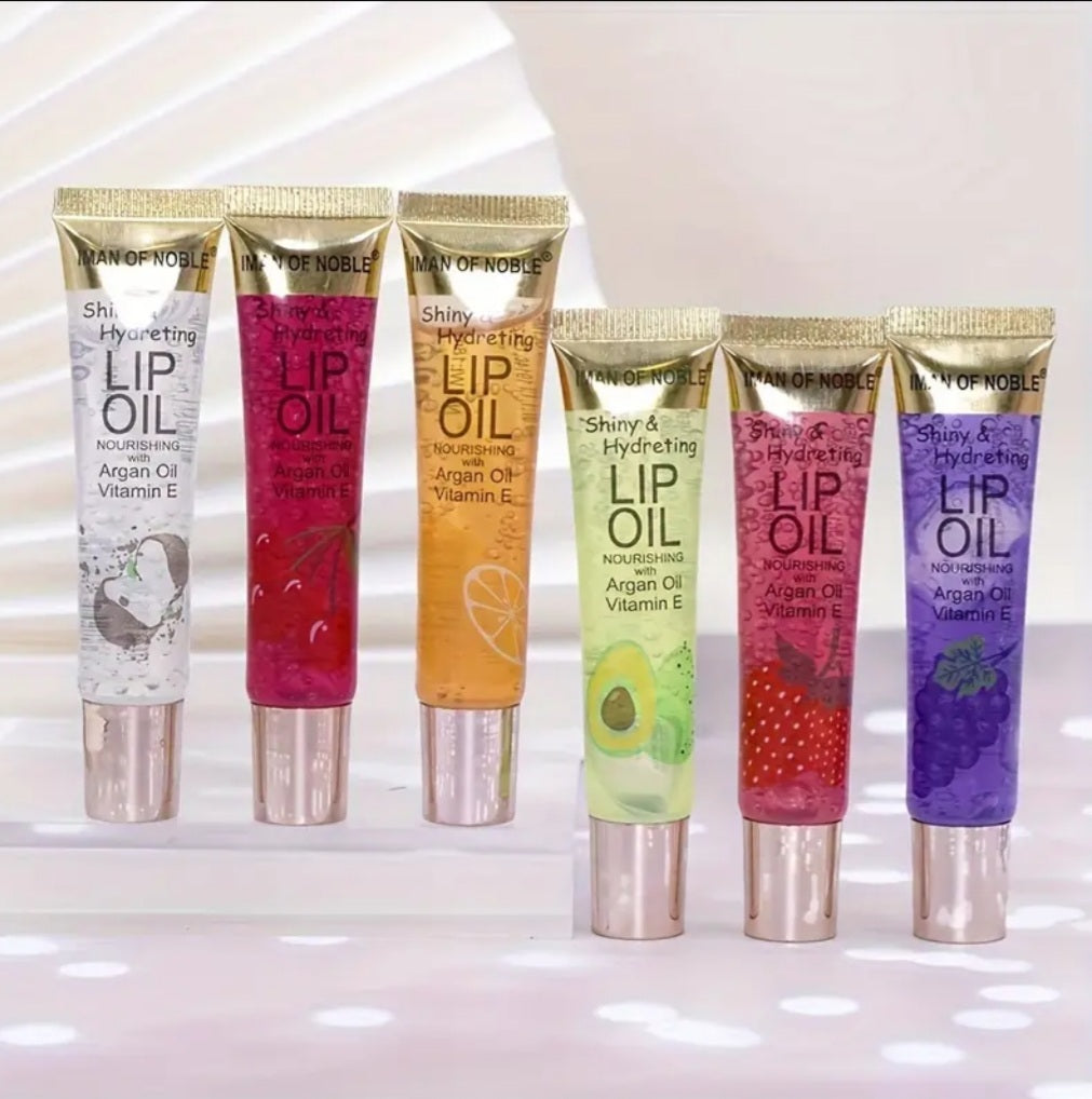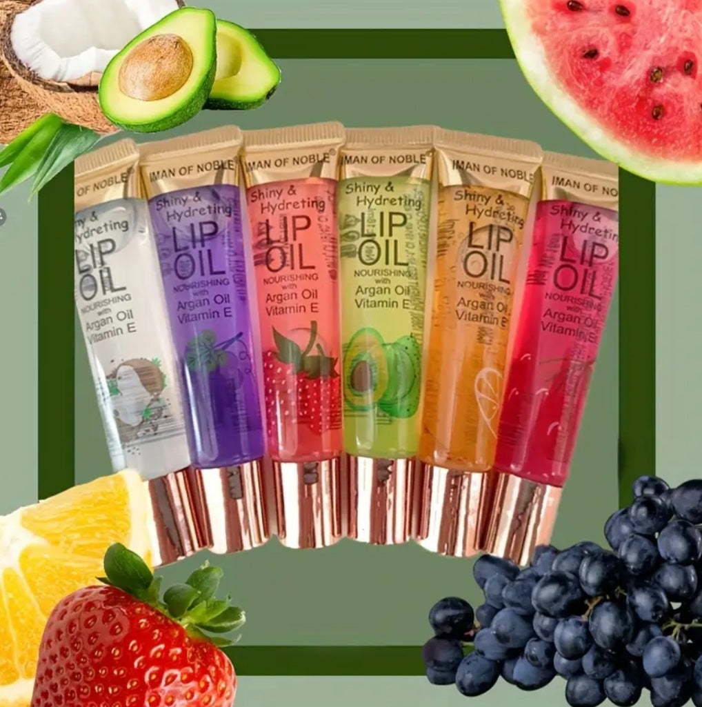 6 huiles à lèvres hydratante Brillante d'Argan, aromatisée aux fruits pour les lèvres sèches, parfumée, hydratante et brillante. (Avocat Raisin Coco Fraise Orange Cerise)(33)