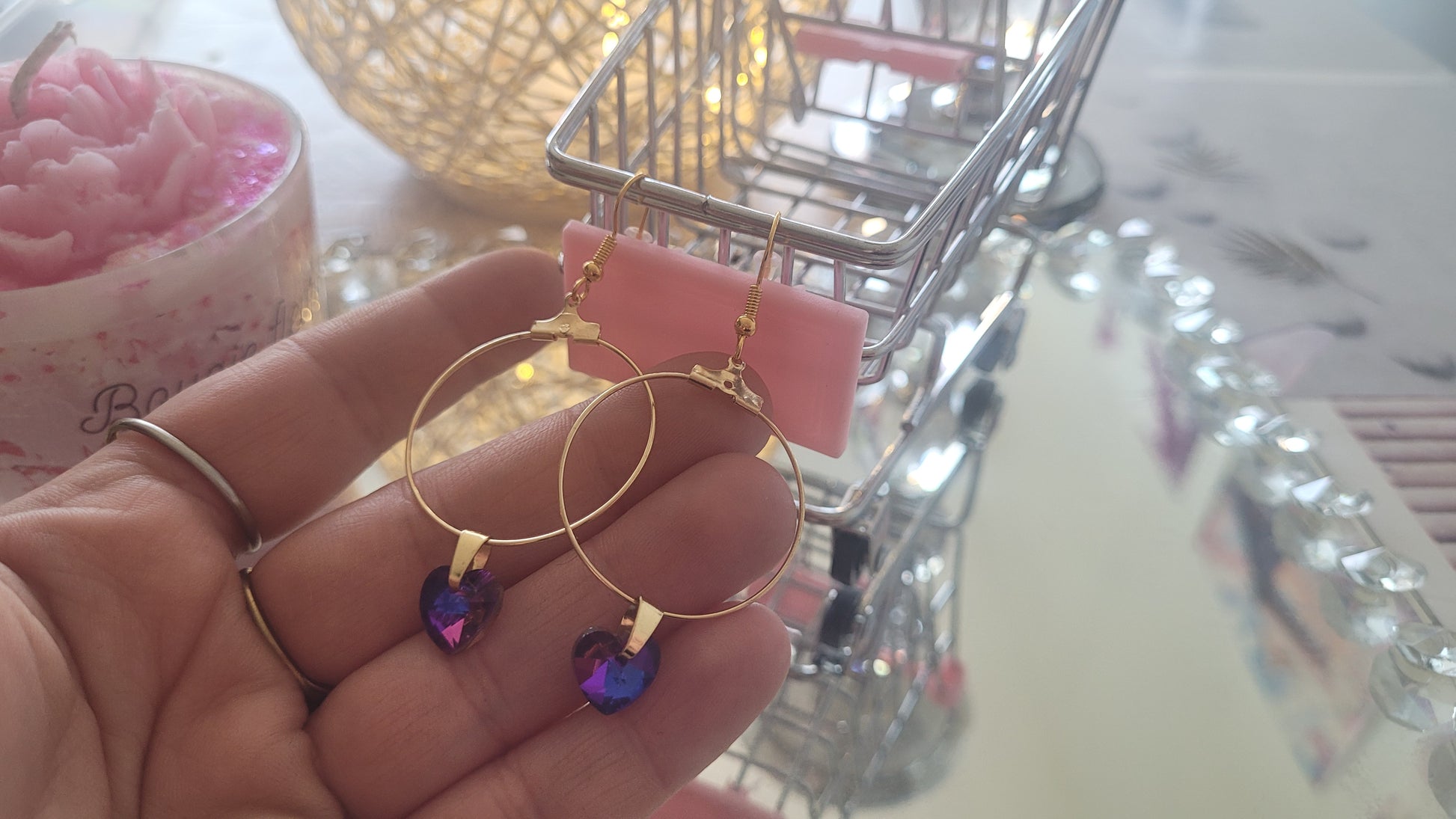 boucles créole coeur rose (23)