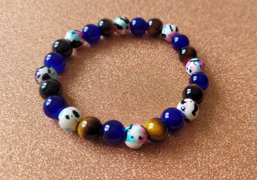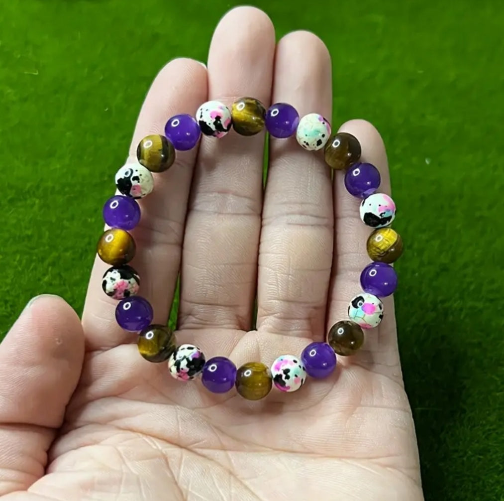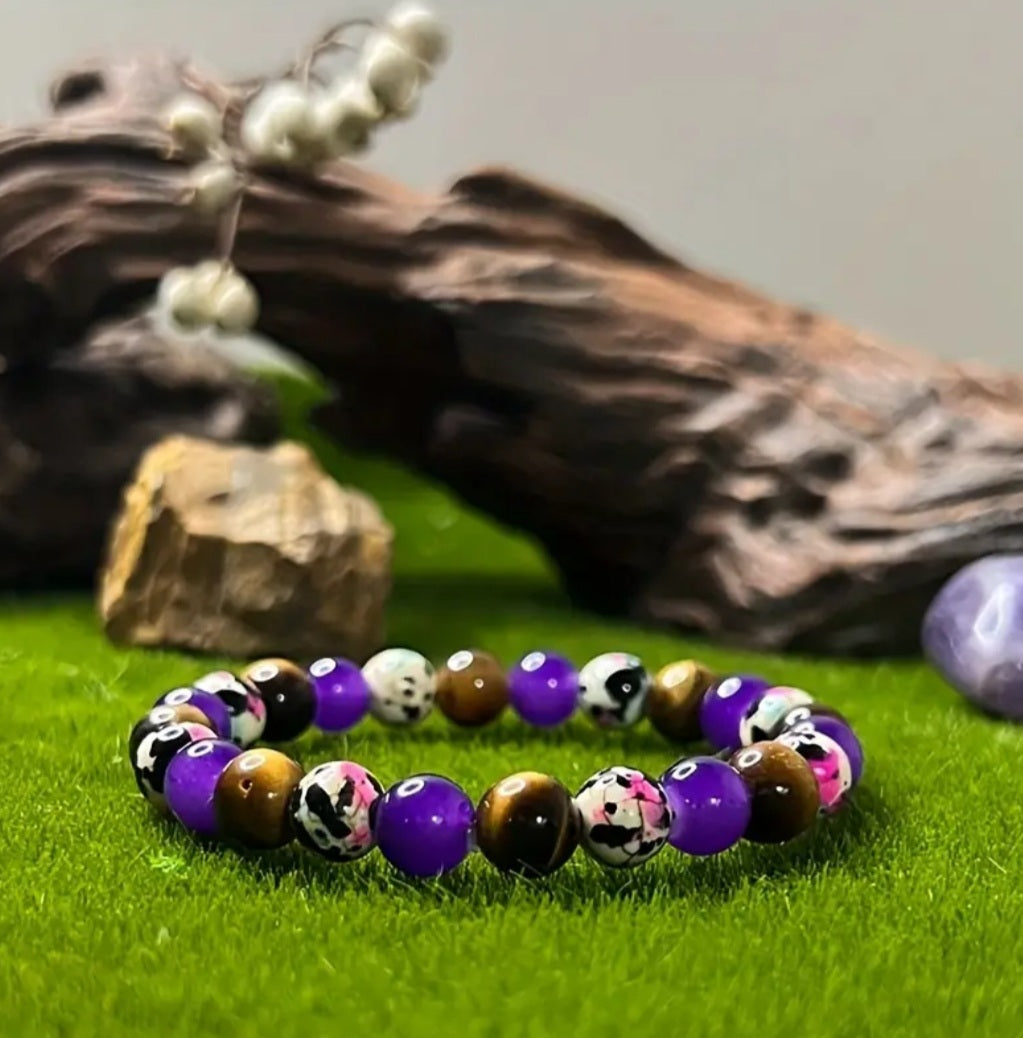 bracelet Œil de tigre & pierre tachetée - Amélioration de la clarté mentale et de la concentration, renforcement de la détermination 8mm (128)