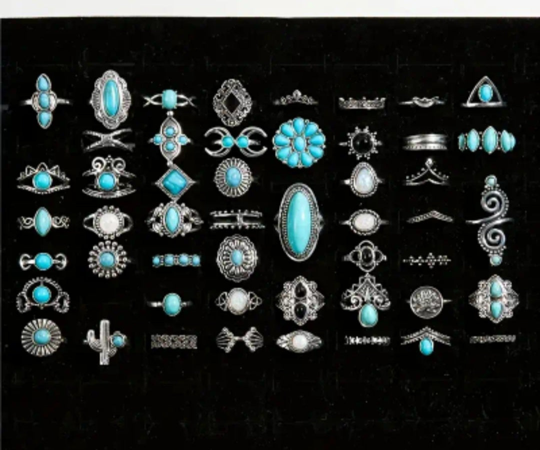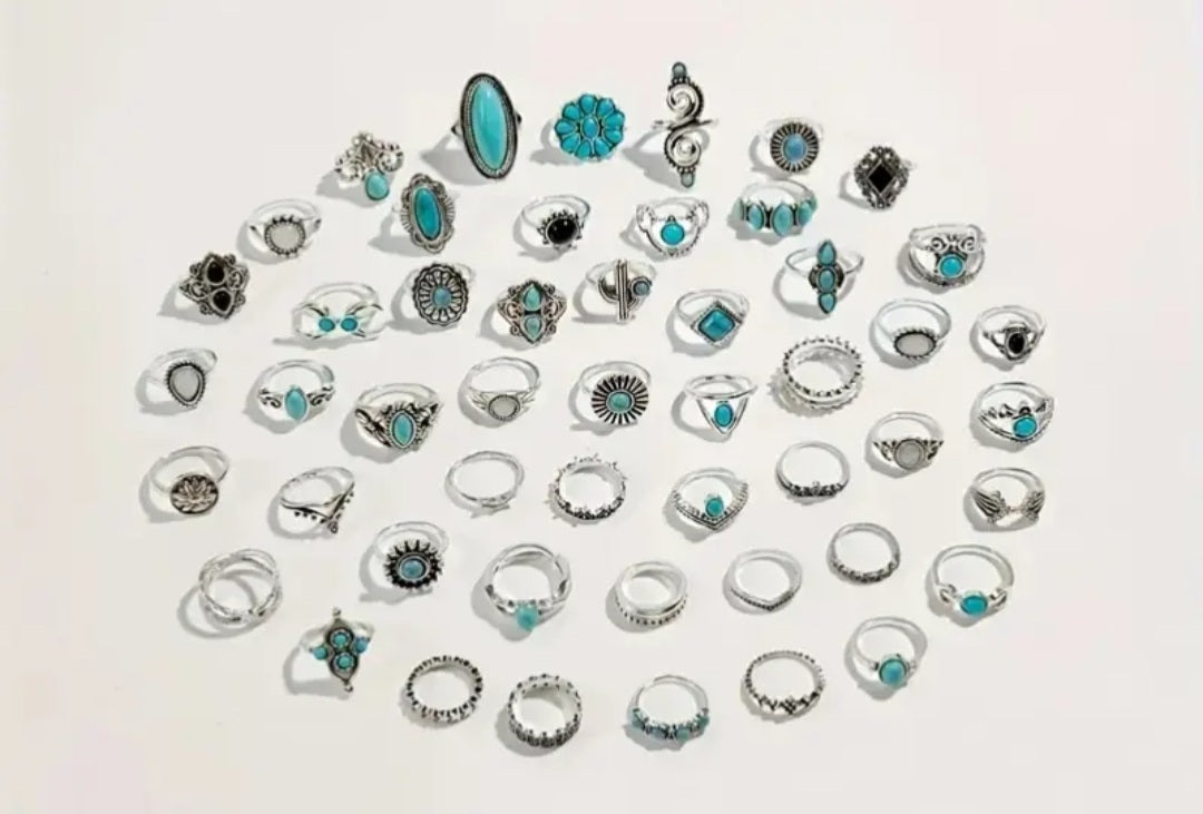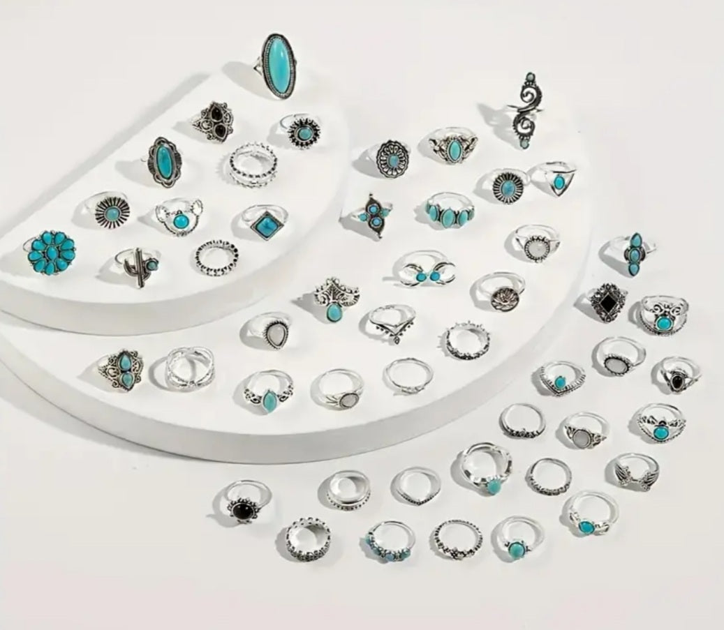Ensemble Alina avec 30 bagues vintage bleu/gris