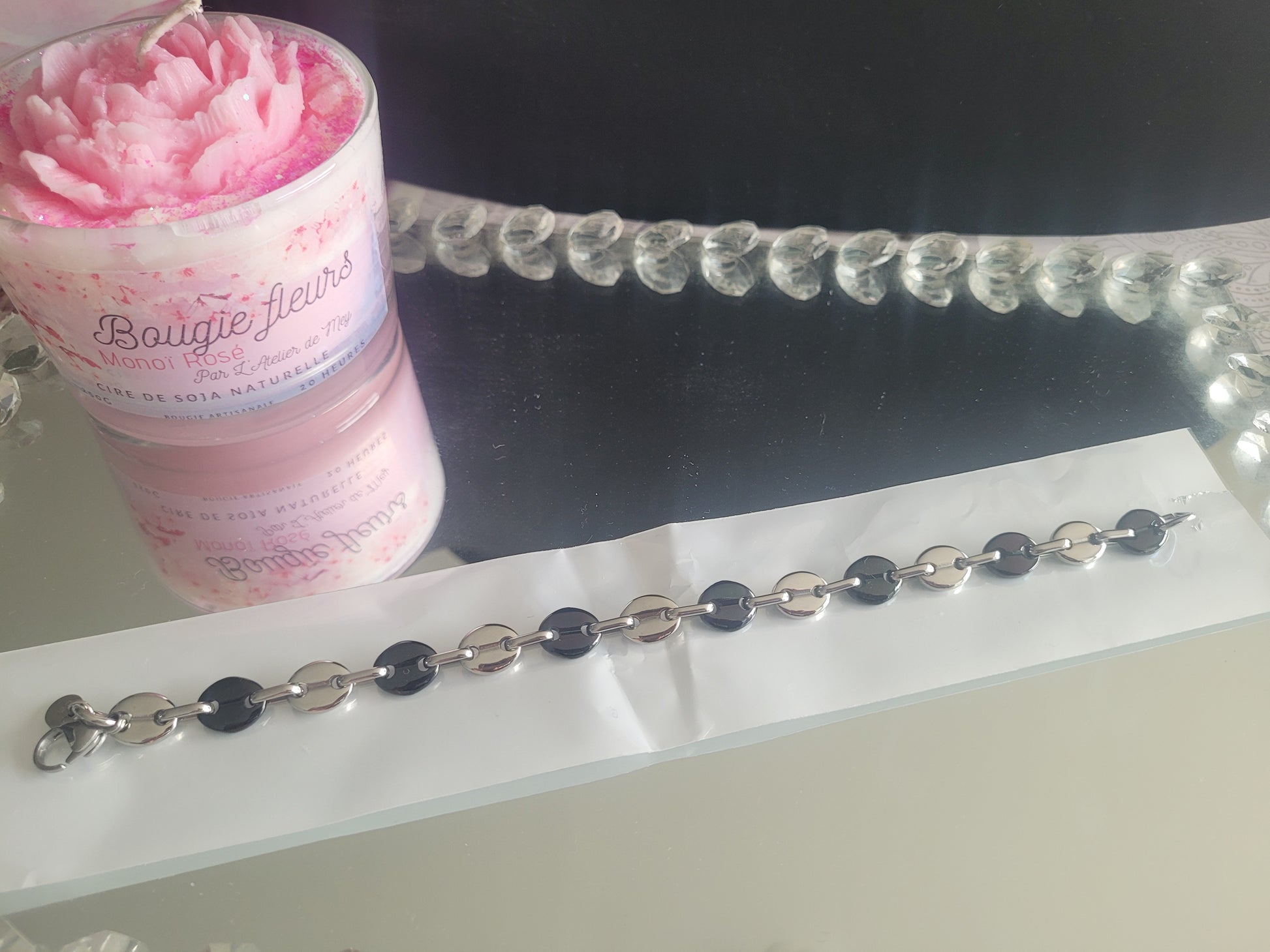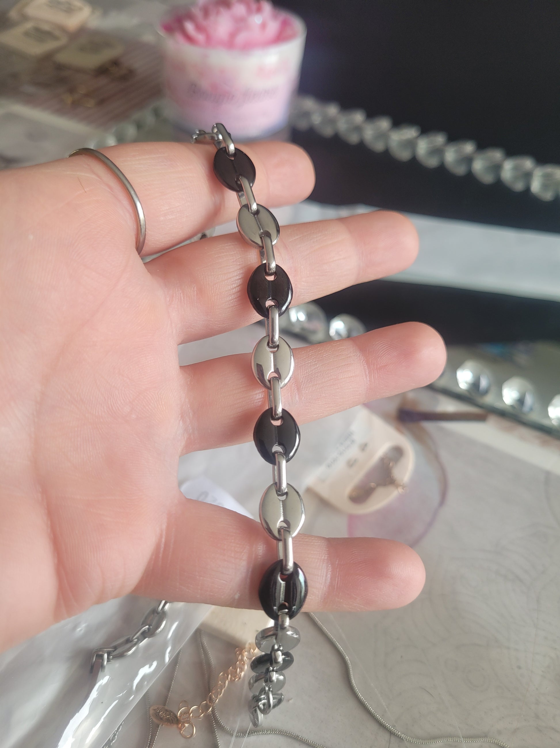 gourmette grain de café bicolore noir/argenté en acier inoxydable (39)
