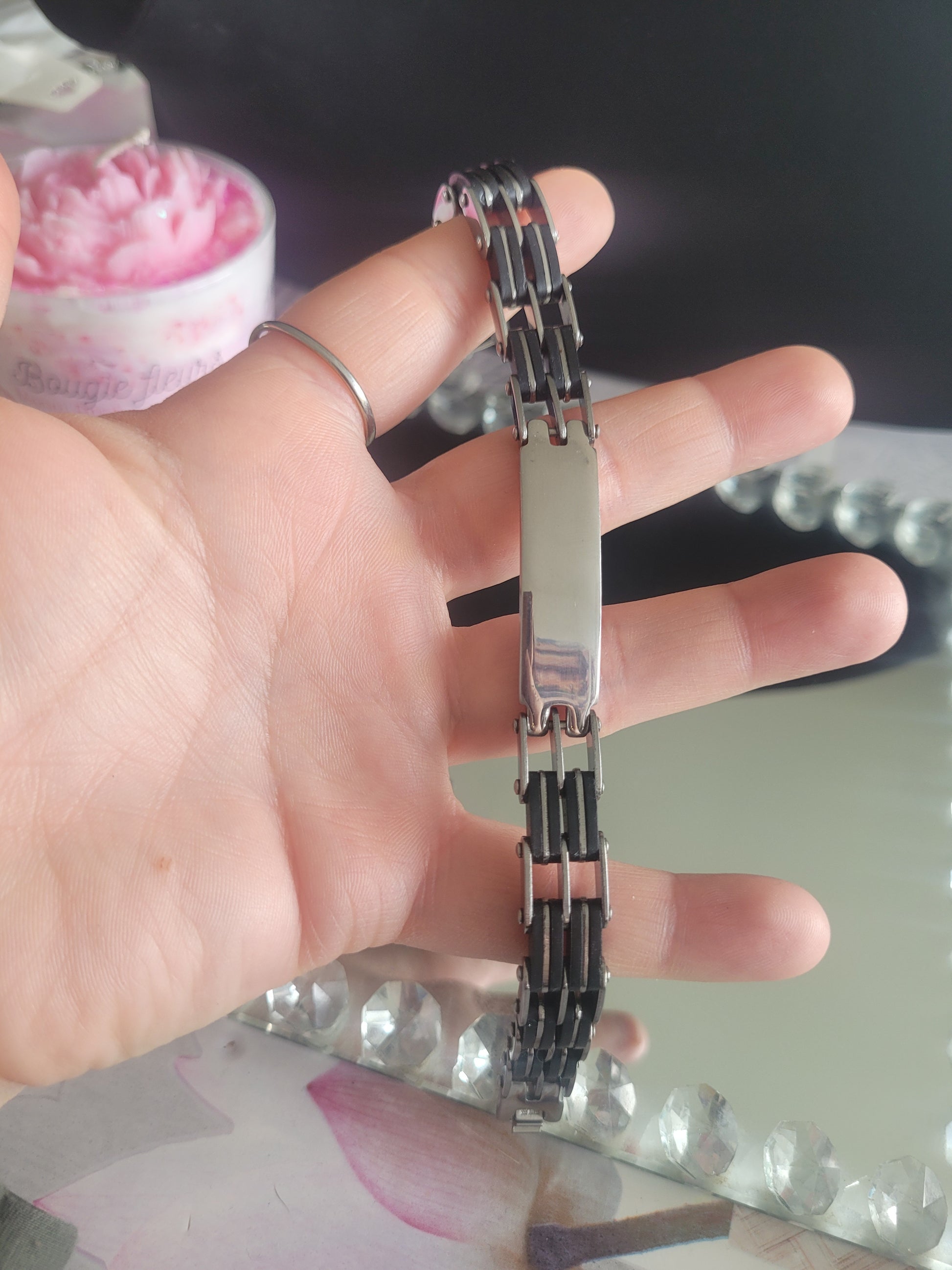 Gourmette homme acier/noir (26)acier inoxydable