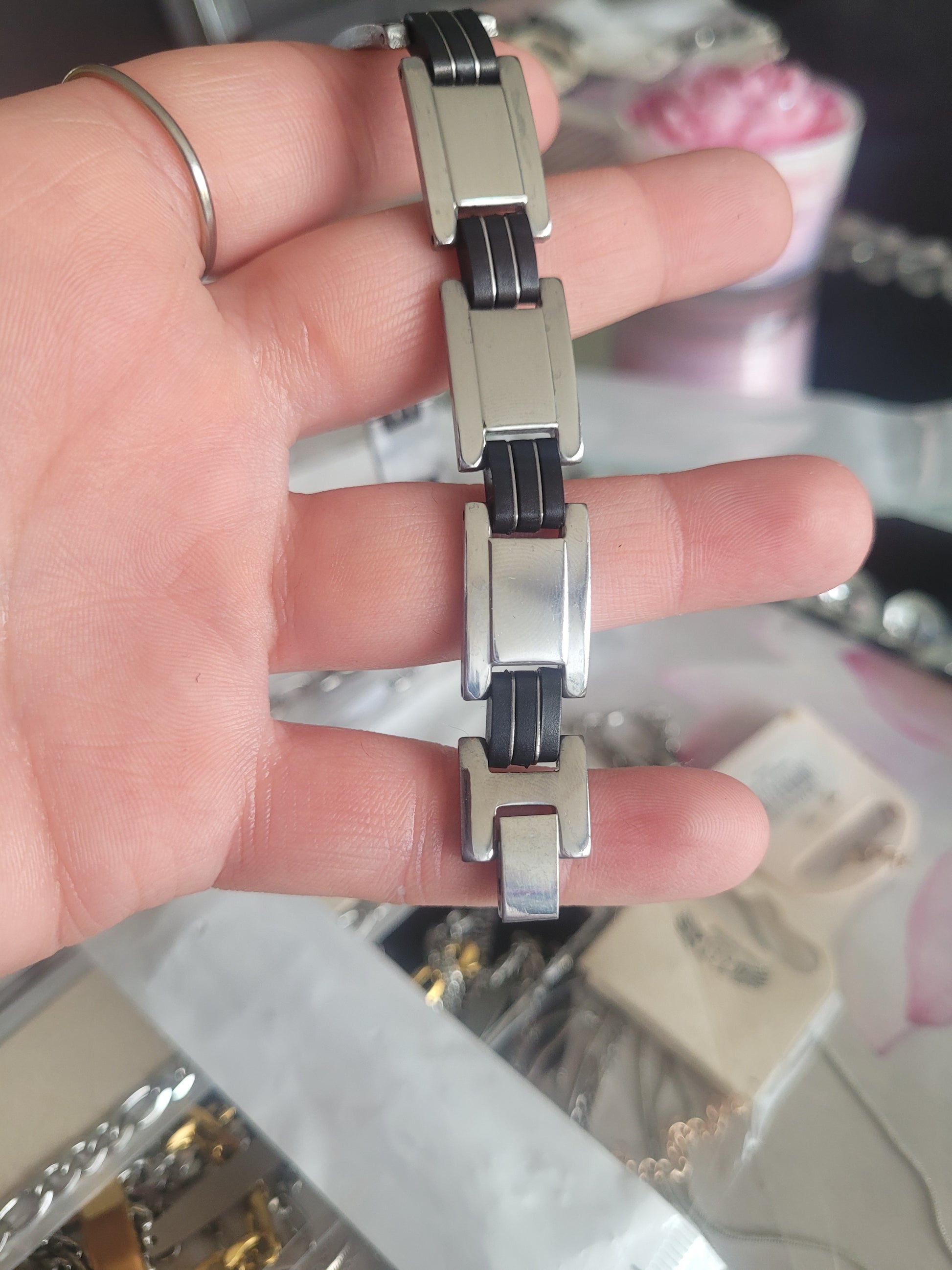 Gourmette homme acier/noir (96)acier inoxydable
