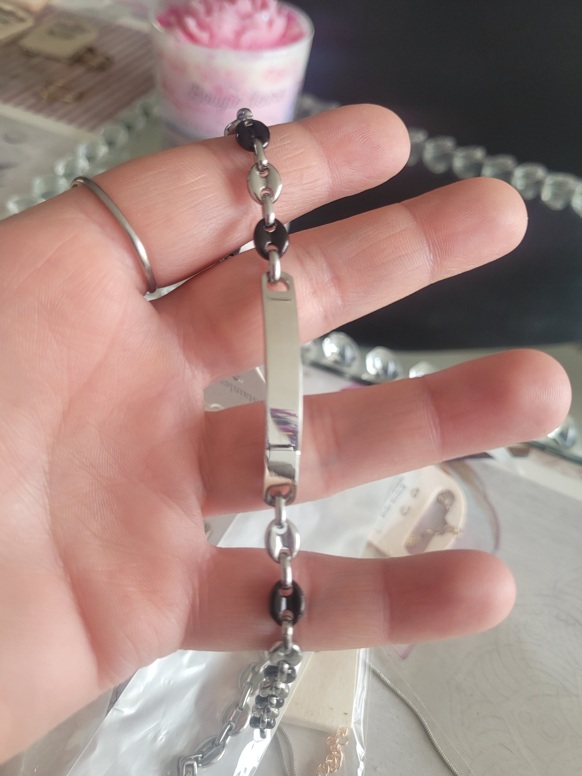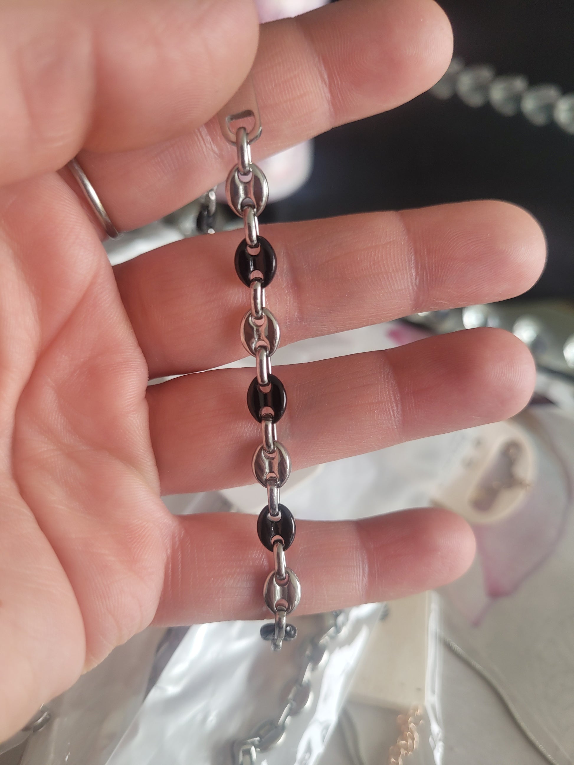 gourmette mini grain de café bicolore noir/argenté en acier inoxydable (89)mixte