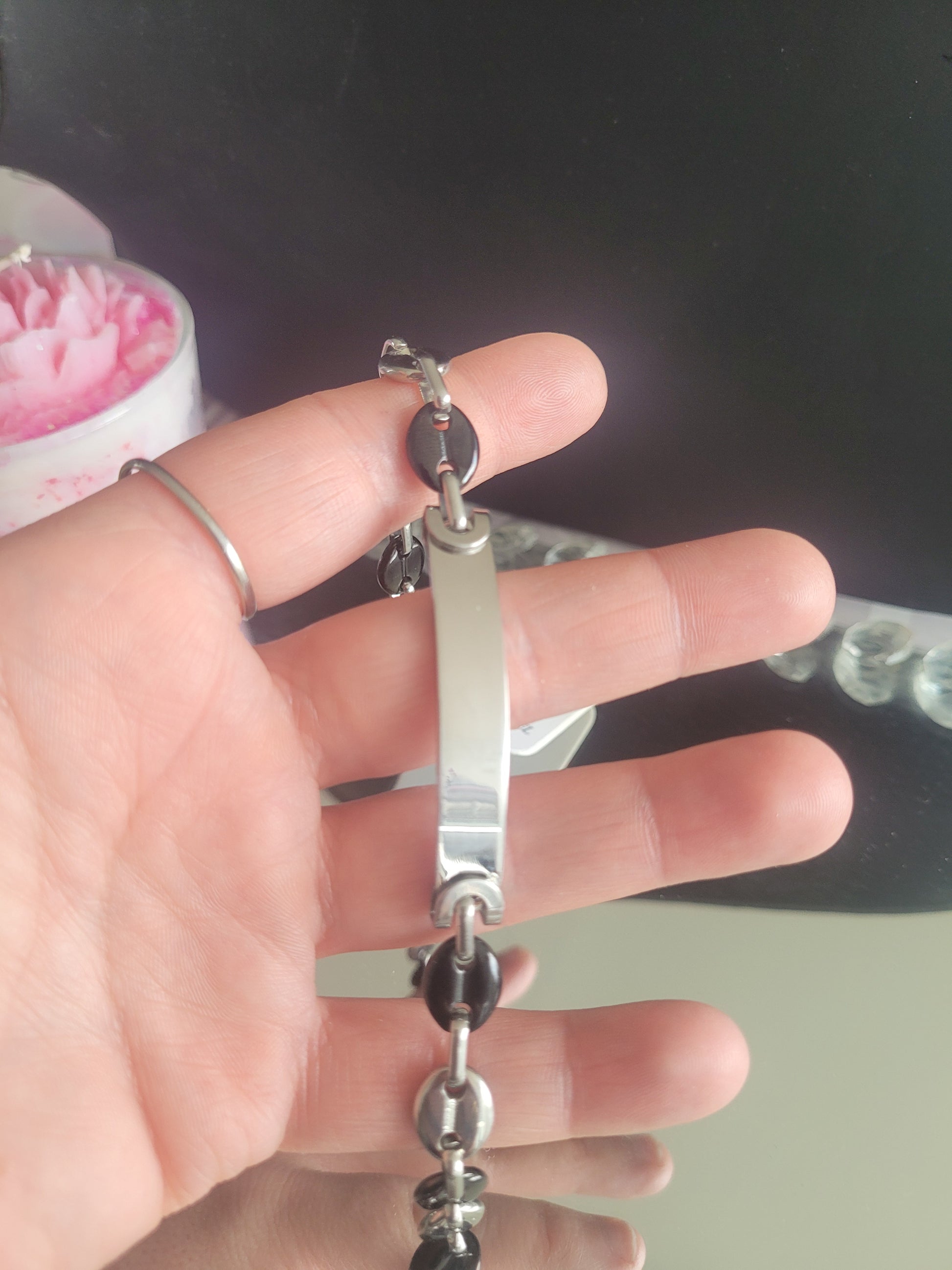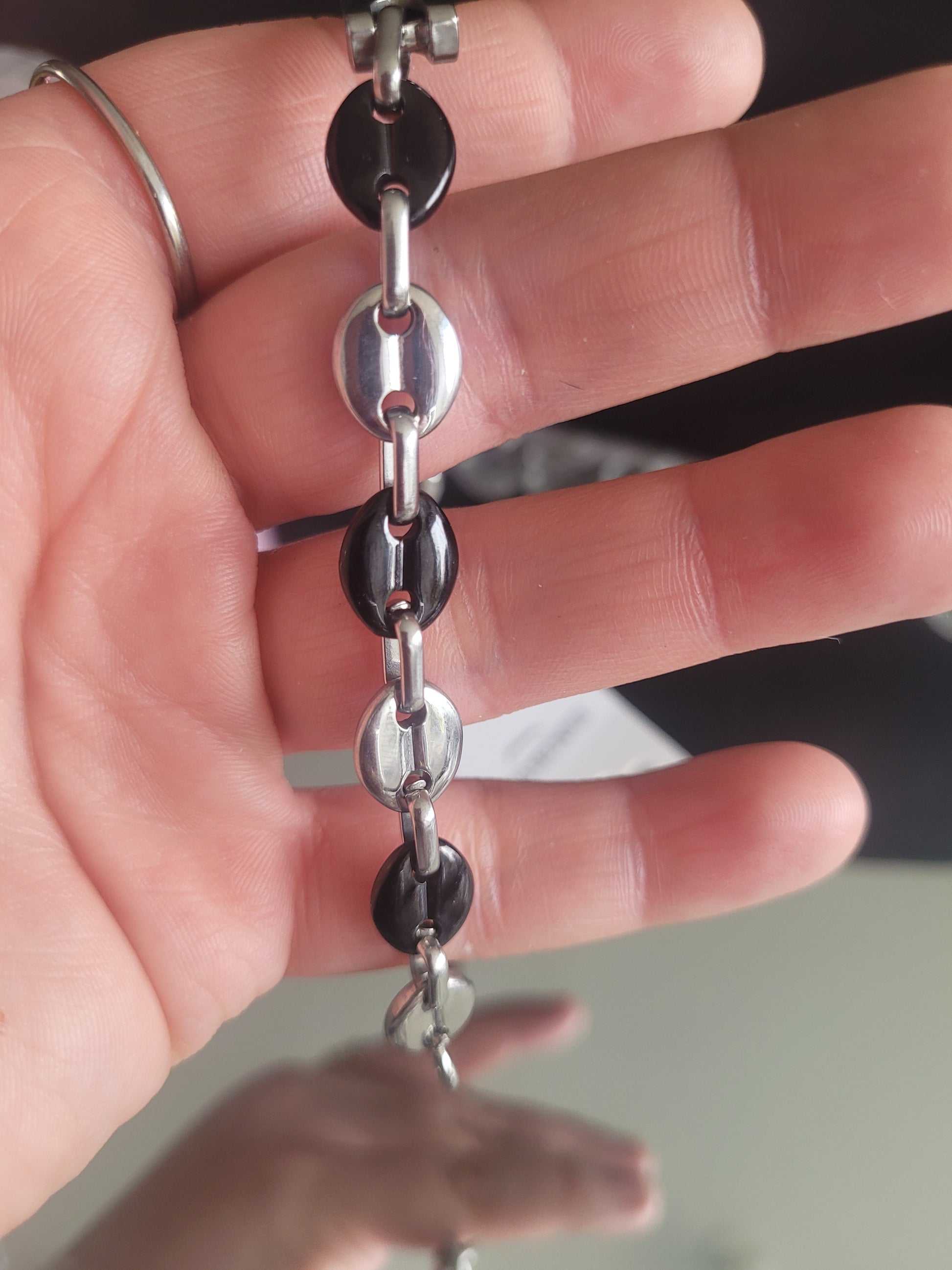gourmette grain de café argenté en acier inoxydable (81)