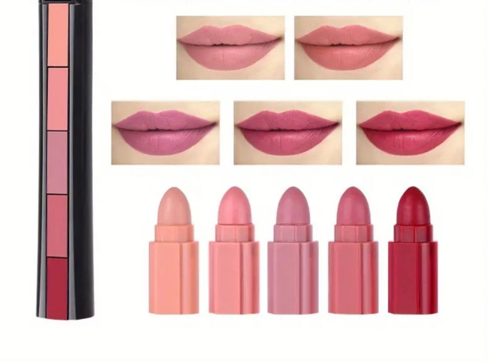 1pc Rouge à lèvres mat 5 couleurs, glaçage à lèvres texture velours, Cosmétique des lèvres longue durée, tous les types de peau, Fini mat, Format facile à transporter.(2)