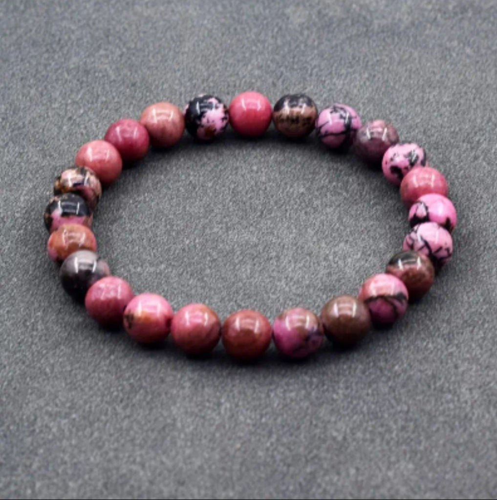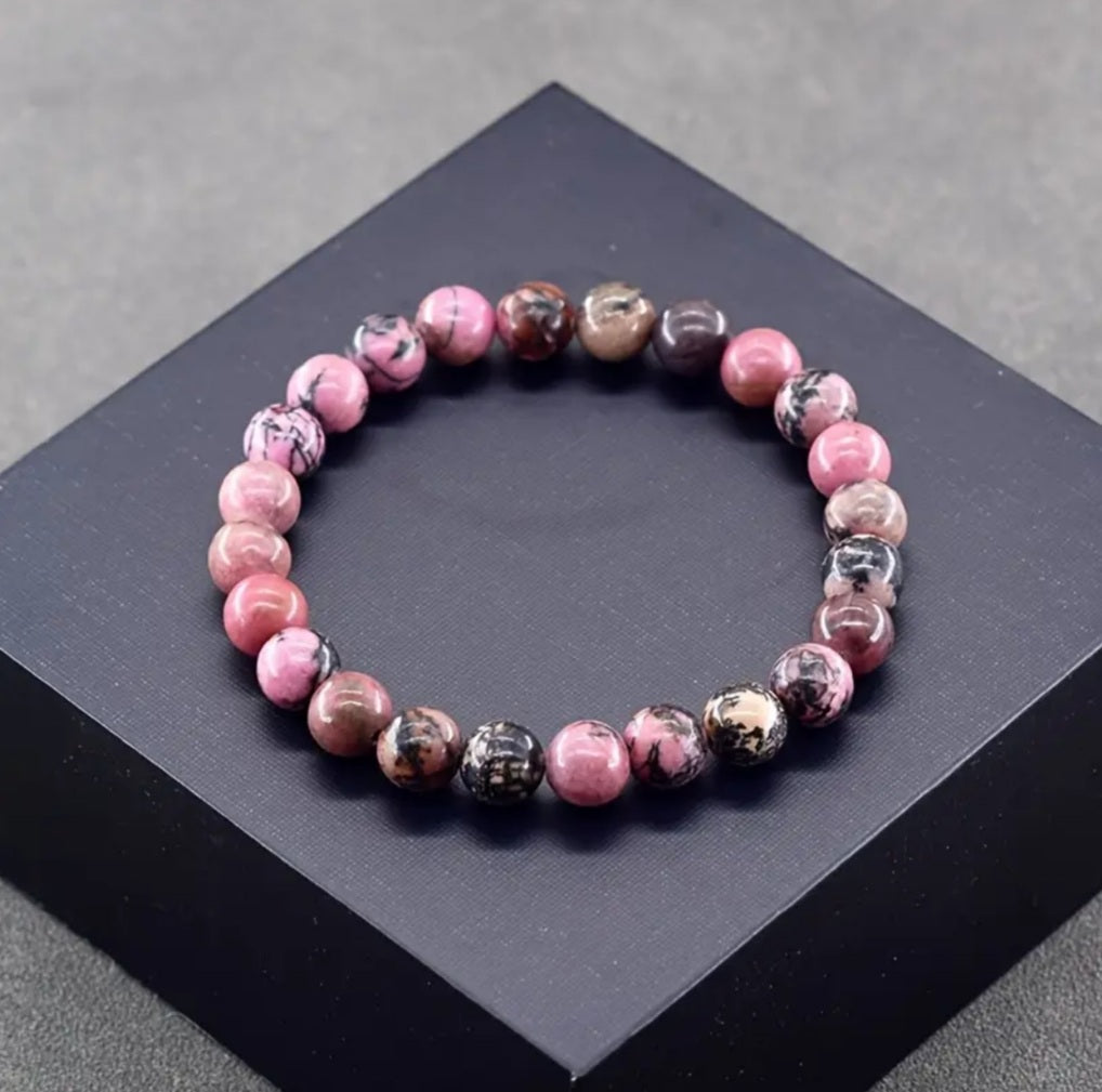 bracelet en perles de pierre naturelle rose avec des décorations en perles torsadées (96)
